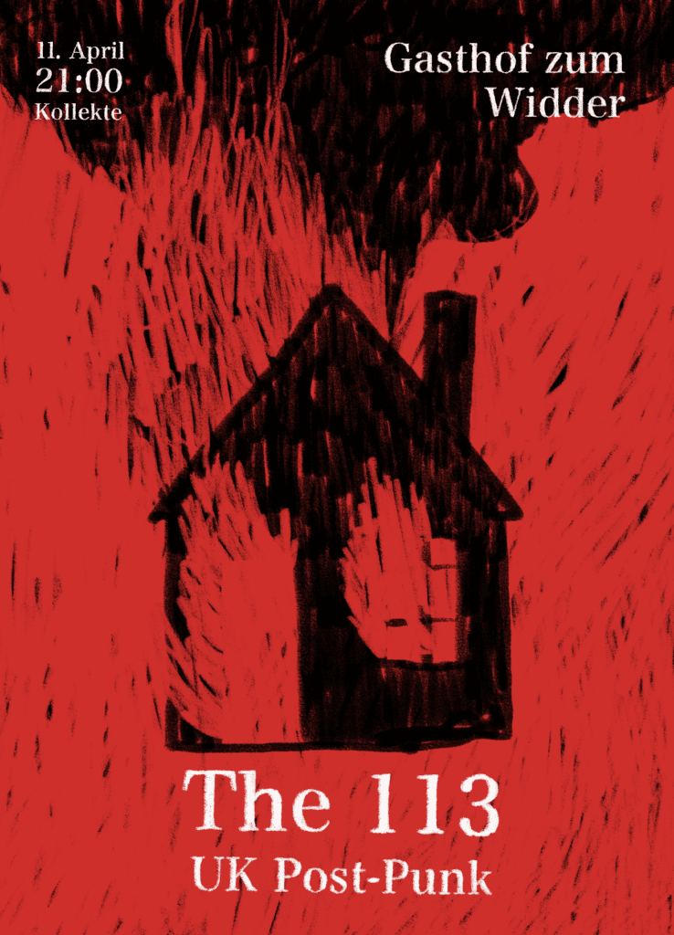 Konzert The 113UK Post-Punk mit freiem Eintritt und Kollekte.Zeit 21:00 Uhr am 11. April 2026Ort Gasthof zum WidderLink Zur offiziellen WebseiteiCal In deinen Kalender!